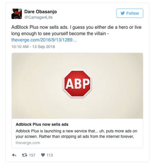 And not surprisingly, ABP has suddenly changed their tune. Claiming that there was misinformation in the market, ABP now states their new platform will not sell ads, but rather just make whitelisting faster and easier. ABP now posits “The Acceptable Ads Platform is simply a tool that makes it easier for publishers to have non-intrusive ads on their websites. This allows websites, especially small and medium-sized blogs, to benefit from the Acceptable Ads initiative,” (Ad News). These quick changes of facts come a little too close after backlash from Google and AppNexus. Perhaps they’ll mold their statements once again when someone else responds negatively. We can’t be too sure.